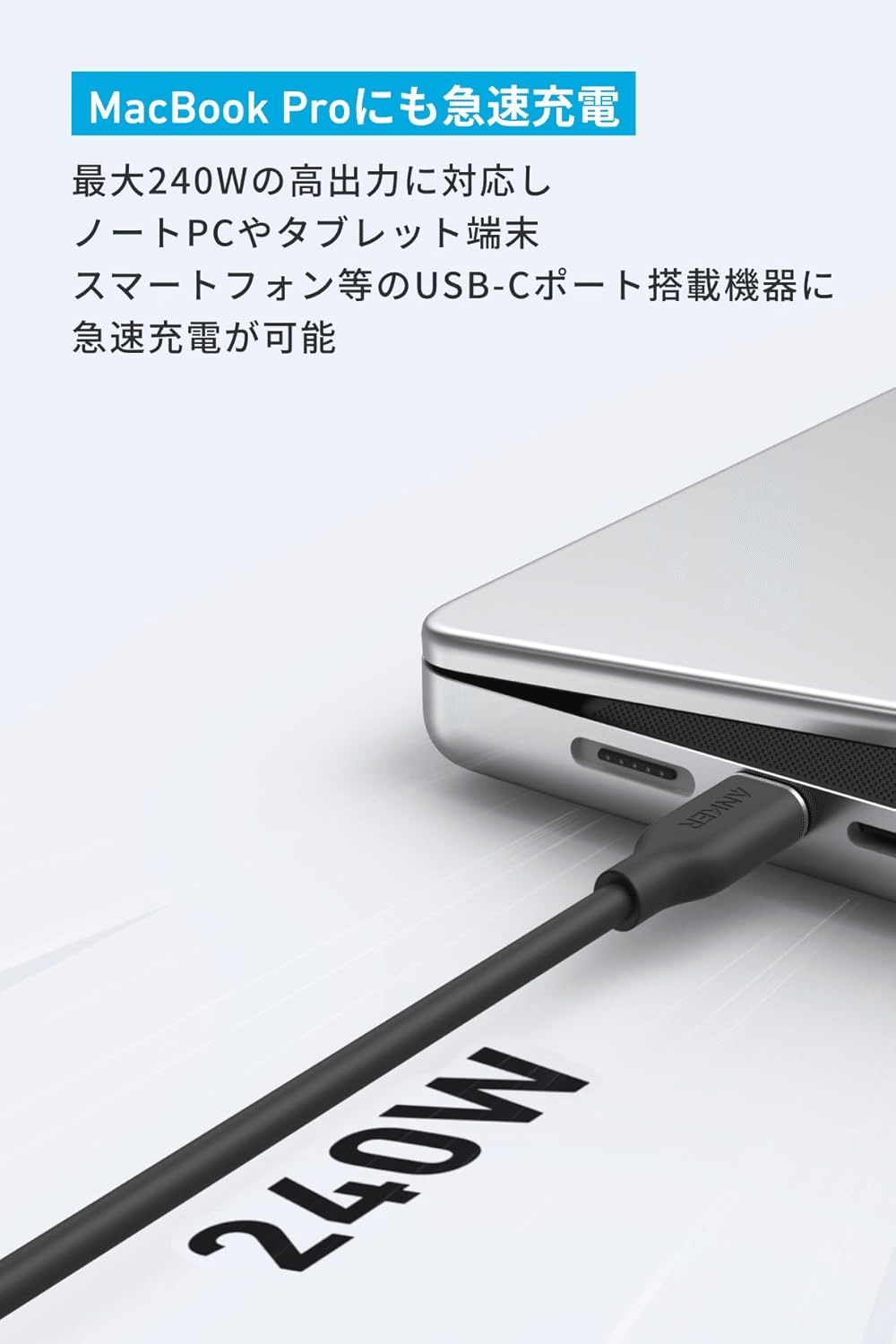 MacBook Pro にも急速充電 – Anker PowerLine III Flow USB-C 1.8m 2本セット