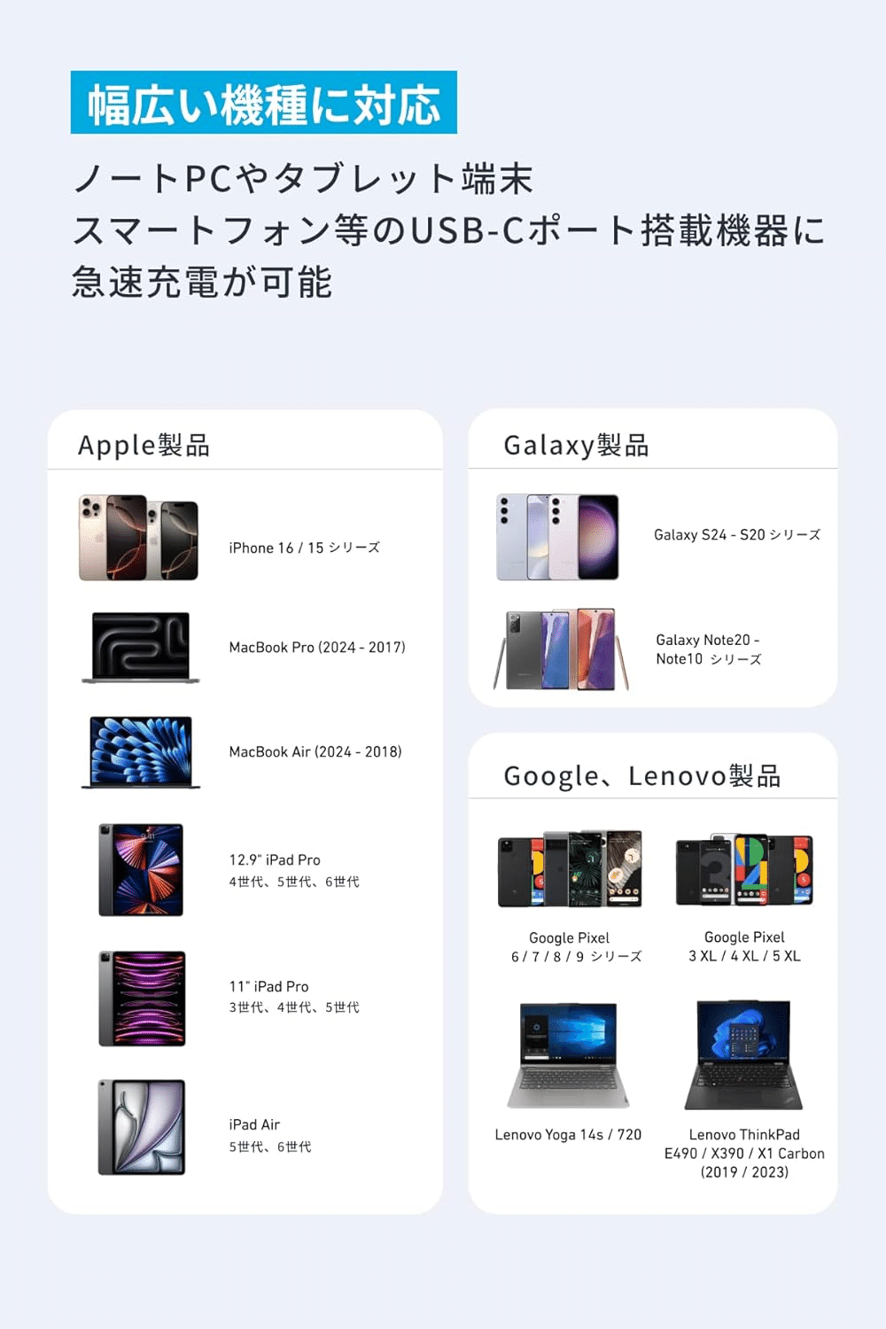 幅広い機種に対応 – Anker PowerLine III Flow USB-C 1.8m 2本セット