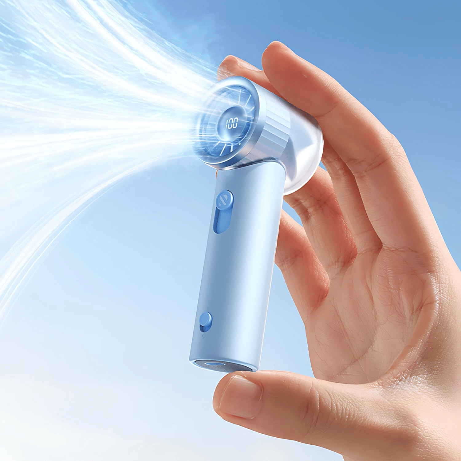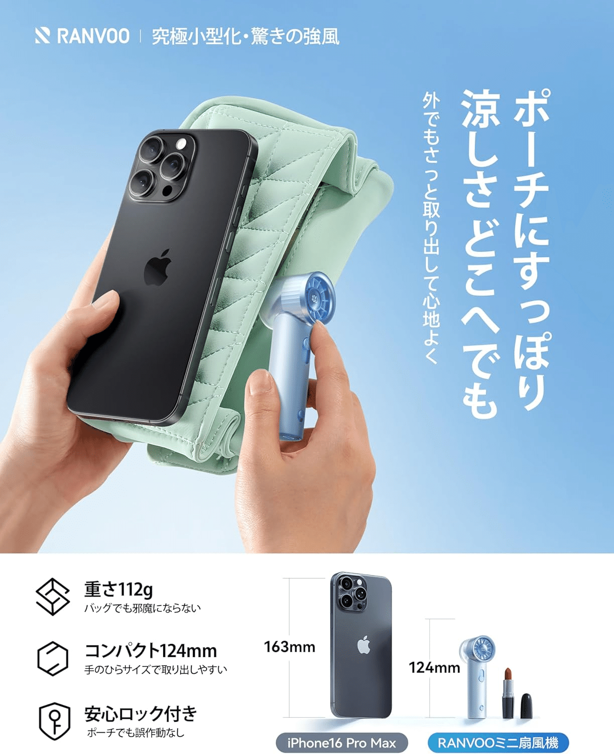 ポーチにすっぽり涼しさどこへでも – RANVOO ハンディファン アイスブルー 超軽量強風