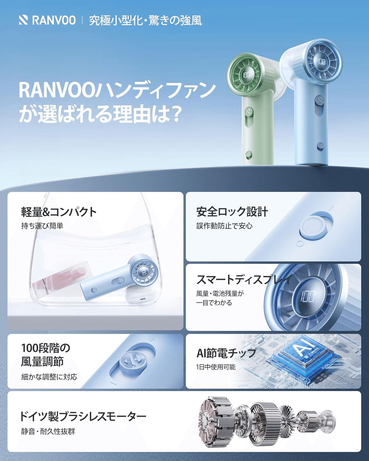RANVOOハンディファンが選ばれる理由は? – RANVOO ハンディファン アイスブルー 超軽量強風