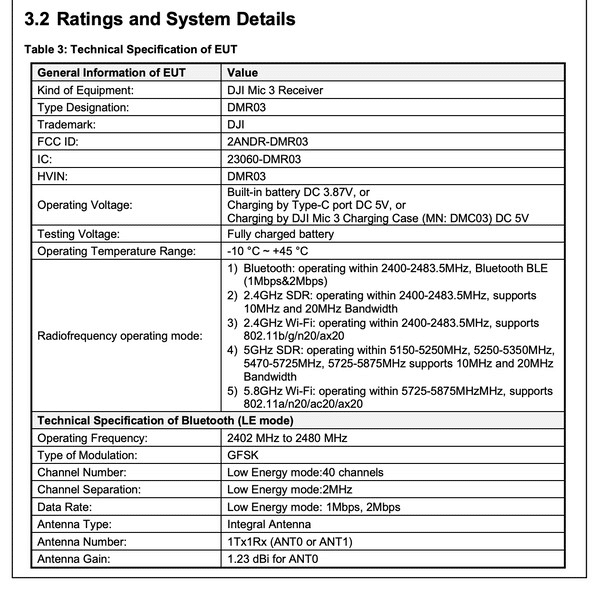 現在、DJI Mic 3は連邦通信委員会(FCC)にのみ提出されています。
